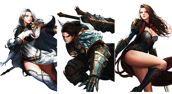 거대한 장검을 휘두르는 ‘전사’는 방어력이 월등한 근거리 캐릭터다. 공수를 겸비하고 있을 뿐 아니라, 적들의 공격을 받아가면서도 흔들림 없이 반격을 가한다. 소환사는 원거리 공격에 특화되었으며, 다대가리양한 자연 생물들을 소환해 적들과 대적한다. 다수의 적들과의 공격에 특화되어 있지만, 체력이 약한 점이 단점이다. 블러딩은 폭발적인 스킬을 통해 상대방에서 강력한 데미지를 입히는 캐릭터다. 신속한 동작이 매력적인 킬러로 PK에서 상대의 체력이 다할 때까지 검을 거두지 않는다.