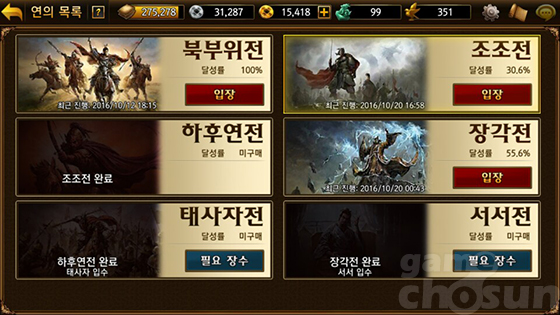 보통 연의 플레이보다 전략전 플레이를 중심으로 하는 유저가 군량미가 남아도는 것으로 파악되고 있다.