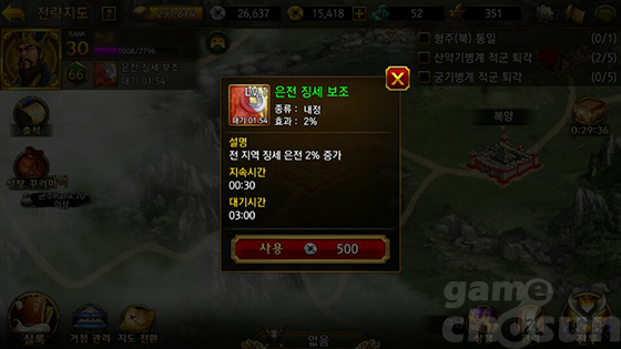 ▲ 사마의의 내정 스킬인 '은전 징세 보조'