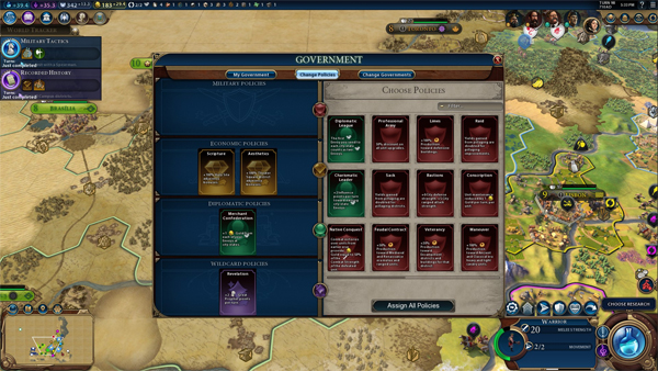 하지만 문명6에서는 과학뿐 아니라 다른 문화에서도 정책 트리를 구성할 수 있을 뿐 아니라 현재 지형이나 성향에 따라 사회 정책이 큰 영향을 미치며 심지어 시리즈 최초로 종교 승리라는 조건이 포함돼 신경 쓸 곳이 한두 군데가 아니다.