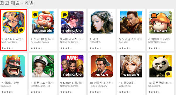 한바탕 홍역을 치른 '데스티니차일드'가 변함없는 인기로 매출 1위 자리를 지켜냈다.