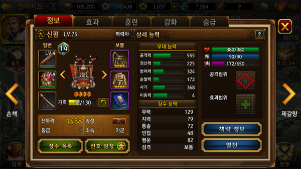 조조는 워낙 탱킹력이 준수해 오픈 초기 사건 클리어를 위해 3차 승급(80레벨)까지 키웠고, 조운, 제갈량, 만총도 현재 80입니다. 신평은 지금 75레벨이죠.