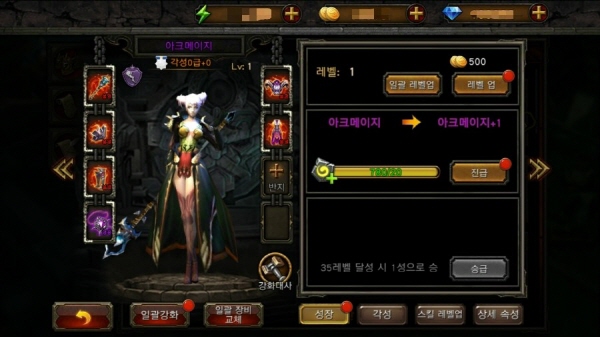 '검은안개'에는 캐릭터를 강하게 육성할 수 있는 콘텐츠가 마련됐다. 아이템도 단순 강화만 있는 것이 아니다.