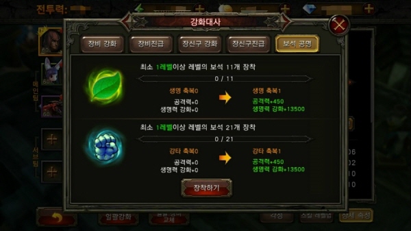 진급 시스템과 보석 시스템 등으로 아이템을 강력하게 만들 수 있고, 강력하게 만들수록 추가적으로 능력치가 상승되는 시스템도 존재한다.