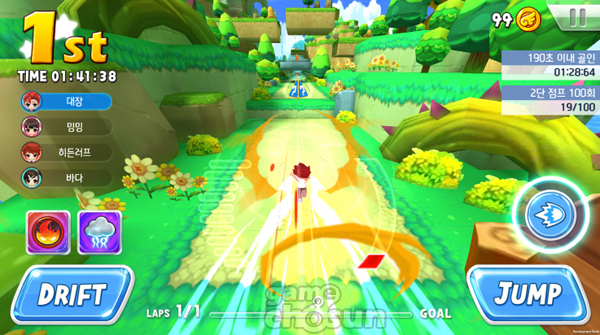 이를 통해 유저는 장애물 전에 미리 부스트를 써서 순간 도약으로 상대보다 앞서갈 것인지 혹은 직선 길에서도 부스트를 모아 한방 부스트를 쓸 것인지 등 다양한 전략을 펼칠 수 있다.