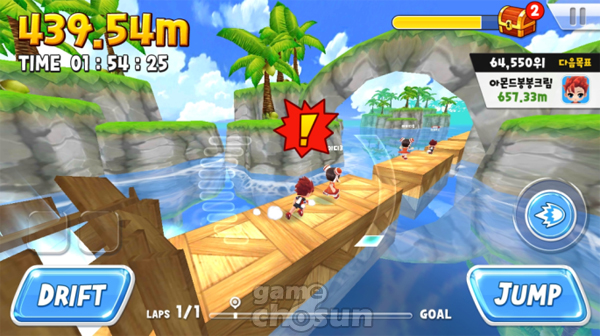 특히 경쟁대전에서는 ‘드리프트’와 ‘슈퍼대시’ 등 조작 스킬의 활용도가 높아 PC 온라인게임 못지 않은 박진감을 느낄 수 있고 날아오는 오브젝트를 피하거나 장애물을 넘어 오래 생존해야 높은 점수를 얻는 서바이벌 모드에서는 일반 모드에서는 볼 수 없는 코믹한 연출과 카메라 시점으로 보는 재미를 더한다.