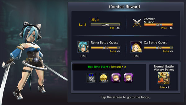 전투를 마치면 각종 보상을 획득한다.
