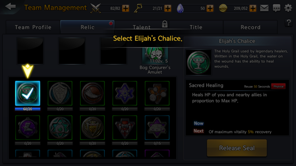 유물들을 캐릭터에 장착해 특수 효과를 받을 수 있다.