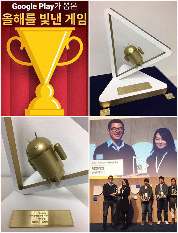 그 중 ‘데빌리언’은 ‘올해를 빛낸 아름다운 게임’으로 최종 선정되었으며, 앞서 게임빌은 ‘구글 플레이 Playtime 2016 Seoul’ 행사를 통해 수상에 참여했다. 이 게임의 화려한 액션 연출과 빼어난 그래픽 효과도 수상 이유로 꼽히고 있다.