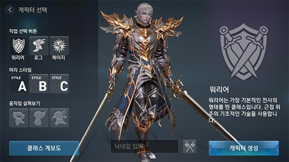 검과 방패, 그리고 창을 다루는 데 능숙한 엘프 워리어는 ‘템플 나이트’와 ‘소드 싱어’로 전직할 수 있다. 템플 나이트는 검과 방패를 활용하여 주변을 지속적으로 공격하는 데 특화된 광역 탱커다. 소드 싱어는 창과 듀얼 소드를 주무기로 사용하며, 중거리를 공격할 수 있는 강력한 스킬들로 무장한 하이브리드 딜러에 속한다.
