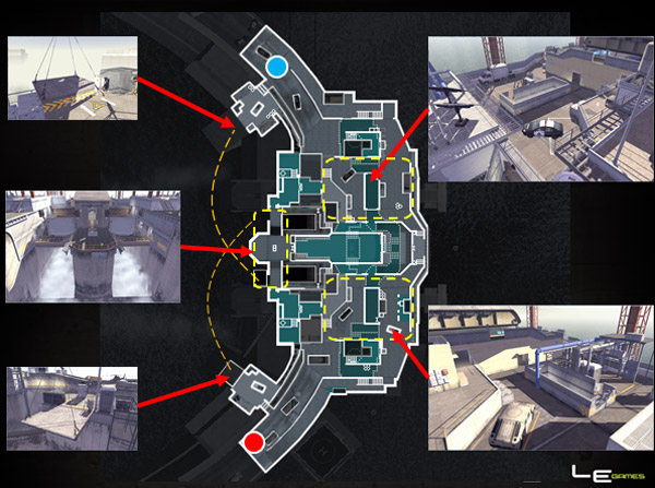 중앙 교전은 난이도가 높은 편이지만 양측 전장은 단순한 공간 구성으로 난이도가 낮은 편. 특히 미사일 조립대가 회전하면서 3개의 스나이퍼 포인트를 순차적으로 가려준다.