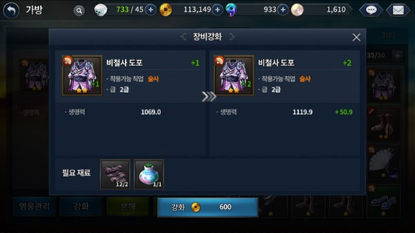 영웅은 총 8개의 장비를 착용하는데 빠짐없이 모두 장비를 착용시켜 주는 것도 중요하고 높은 등급의 장비를 착용해야한다. 하지만 제아무리 명검이라 할지라도 갈고 닦지 않으면 결국 녹슬게 되는 법이다. 높은 등급의 장비를 착용하는 데서 그치지 않고 장비도 강화해야 한다는 뜻이다.