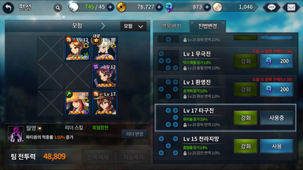 스테이지를 진행하는데 회복을 담당하는 술사가 쓰러져 허무한 패배를 하게됐다면 영웅 배치를 살펴보는 것이 좋다. 자동배치 클릭만으로 각 영웅 직업에 맞는 위치를 선정해주지만 신규 영웅을 얻어 들뜬 마음에 임의로 영웅 배치를 바꿔버렸다면 배치가 뒤죽박죽되는 경우도 있다.