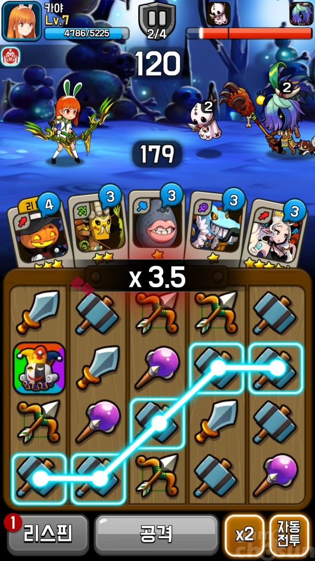 퍼즐도 어렵지 않다. 좌측 첫 번째 칸에 네 가지 무기 중 하나를 타이밍에 맞춰 터치해 자신이 원하는 무기를 선택하고, 제한 시간 내에 다음 칸의 무기를 터치해가는 방식이다. 이를 통해 무기의 연계가 가능해지고, 연계가 될 때마다 공격력은 더욱 증가한다.