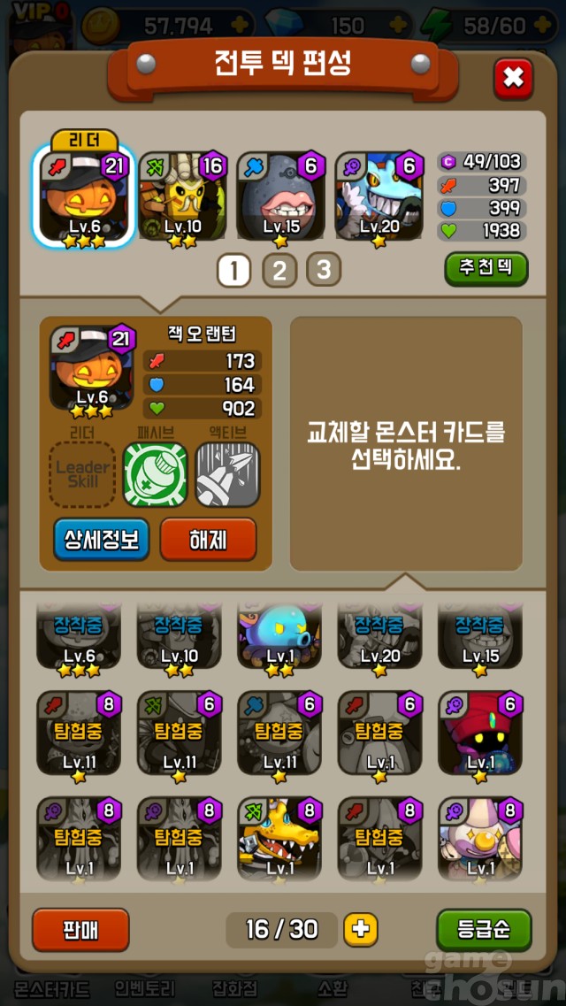 위에서 설명한 몬스터 카드에 대해 좀 더 자세히 알아보자. 몬스터 카드는 최대 1성부터 5성까지 등장하며, 각 몬스터마다 고유의 스킬을 보유하고 있다. 전투에는 총 네 가지의 몬스터 카드를 배치할 수 있는데, 각 몬스터 카드의 무기 타입과 고유 스킬에 따라서 무궁무진한 조합이 탄생한다. 몬스터 카드를 수집하는 것도 이 게임의 콘텐츠 중 하나가 된다.