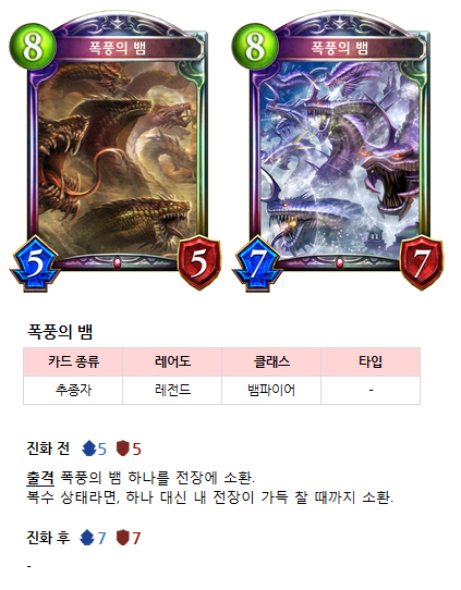 이런 상황에서 뱀파이어 덱의 새로운 상급 추종자로 폭풍의 뱀이 등장했다.