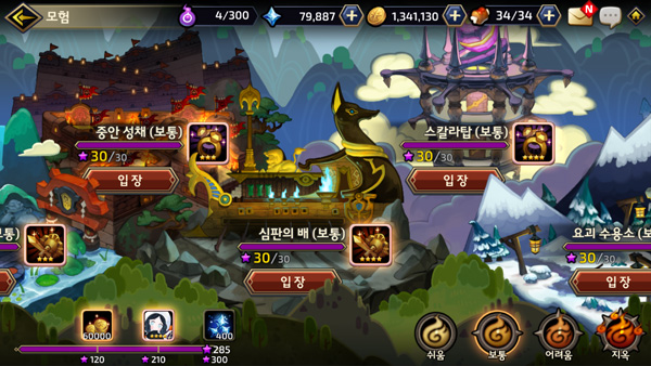 캐릭터를 성장시키고 팀에 더 많은 캐릭터를 배치하기 위해서는 모험을 통해 경험치를 얻어야 한다. 모험 던전은 이용자가 진행하면서 새로운 사냥꾼 동료와 요괴를 얻어 팀을 강력하게 만들 수 있는 곳이다.