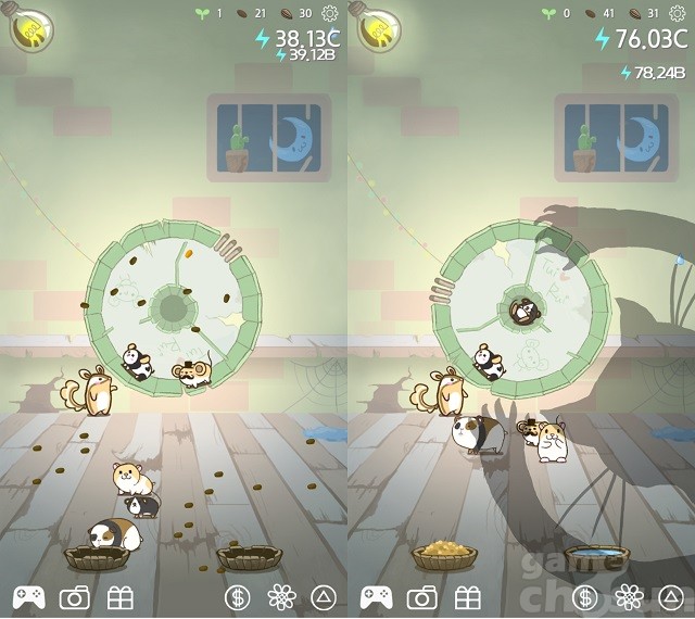 열심히 화면을 터치해 획득한 전기는 쳇바퀴를 업그레이드하거나 새로운 동물들을 불러모으는데에 쓰인다. 다시 말해서 아기자기하고 귀여운 다양한 동물을 모으는 재미도 있다. 이렇게만 본다면 롤링마우스는 단순한 클리커 게임에 지나지 않는다.