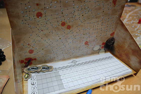 ▲ 잭더리퍼 전용 게임판. 이 판을 이용해 도주로를 확정하고 밑의 표에 적는다.