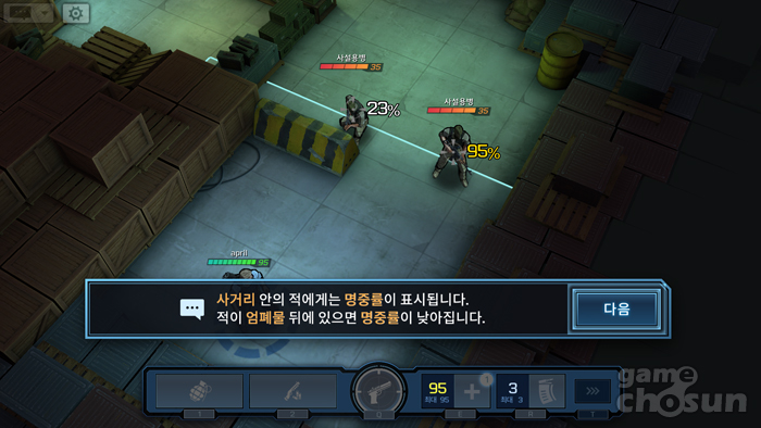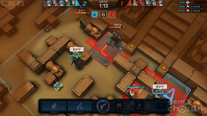 송승목 : 탱고파이브는 5전 3선승제로, 세 라운드를 먼저 이기면 승리한다. 한 라운드가 99초인데 이 99초안에 재미를 준다는 것이 정말 어렵다. 맵과 캐릭터 종류, 은폐와 엄폐, 라운드 단위로 쪼개면서 모바일에서 짧게 끝낼 수 있는 최적점을 찾았다. 99초안에 재미를 함축한 것이 가장 큰 장점이라 생각한다.