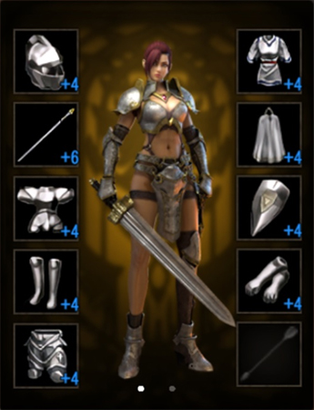다마스커스 검 한자루로 아덴 대륙에 발을 내딛었던 초보 기사가 싸울아비 장검과 강철 세트로 무장하며 초보 기사의 티를 벗더니, 무관의 양손검과 방어구으로 무장하며 숙련된 기사로 성장한다.