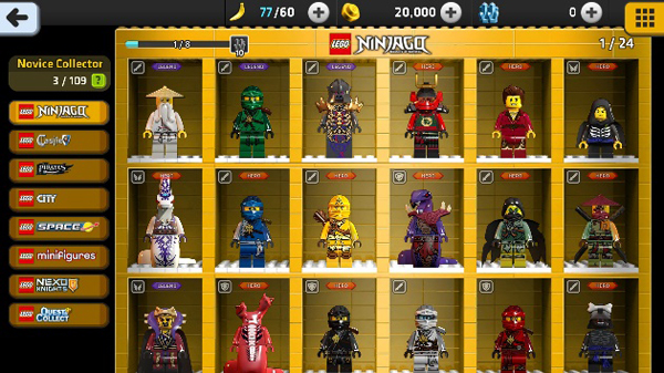 등장하는 레고 캐릭터는 100종이 넘는다. '레고 시티' '레고 미니피겨' '레고 닌자고' '레고 캐슬' '레고 해적' 레고 넥소나이츠' 등 유명 레고 시리즈의 캐릭터들이 게임에 등장한다. 레고 캐릭터들은 언리얼엔진4 그래픽으로 만들어져 정교함이 돋보인다. 대부분 캐릭터는 기존 시리즈의 캐릭터들이지만 여주인공인 '스칼릿'과 메인 악당 '매드 크리에이터', 그의 부하인 '빅스터' 등 넥슨에서 직접 만든 레고 캐릭터들도 있다.
