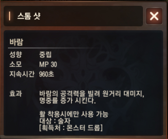 ■ '스톰샷' 기술 획득처 - 아덴 집시촌 북부 필드 사냥터, 정예 다크 엘프 |