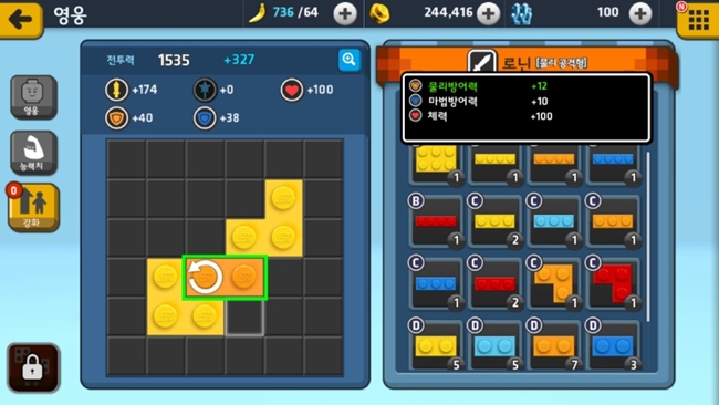 ▲ 영웅 레벨이 올라갈 수록 강화 블록을 넣을 공간이 확장된다.