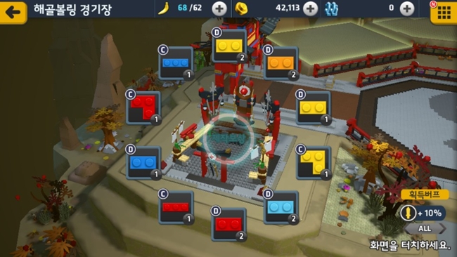 ▲ 디오라마 월드에서 건물을 건설하고 강화용 브릭을 획득할 수 있다.