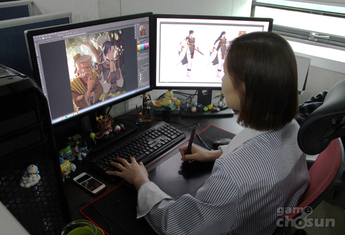 "처음에는 원화가라는 직업에 대해 너무 쉽게 생각했어요. 생각보다 깊이가 있었고 초반에는 지나치게 예쁘고 화려하게만 만들려고 노력했었거든요. 지금 생각해보면 주제넘었던 것 같아요(웃음). 예를들어 열혈강호에 등장하는 캐릭터들은 원작 캐릭터가 사랑 받는 이유가 있는데 그 핵심을 보려고 하는 쪽으로 많이 바뀌었어요"