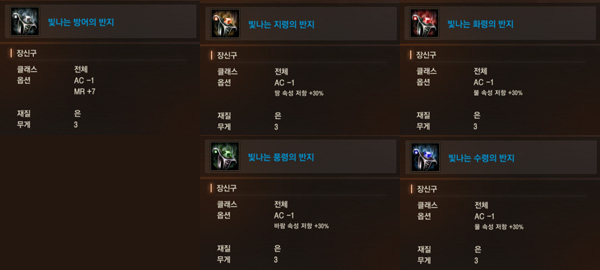 ▲ 기존 수호 반지와 속성 반지의 상위 옵션, 신규 희귀 반지(출처 - 게임조선 촬영)