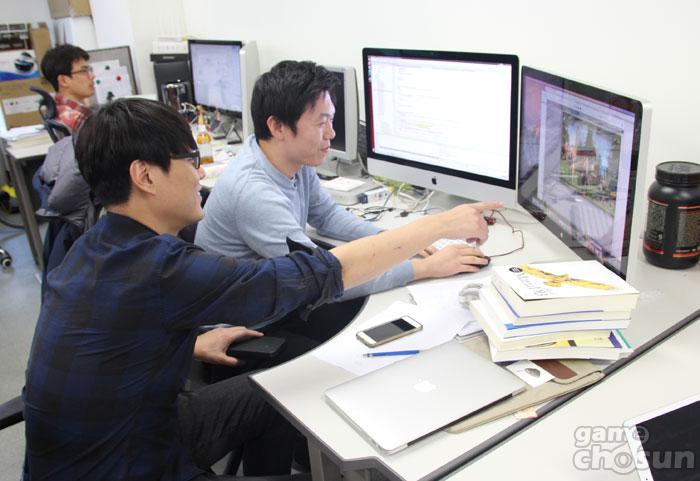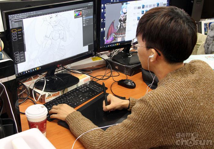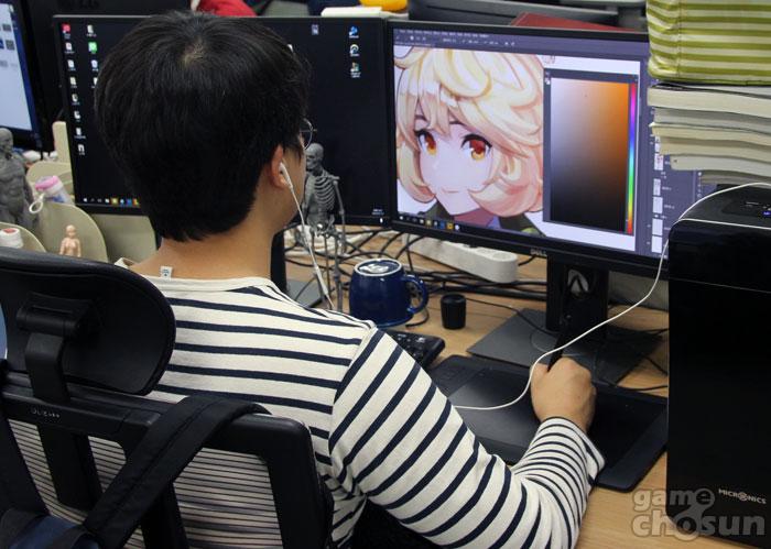 ▲ 막바지 캐릭터 작업에 한창인 스노우팝콘 직원 (출처 - 게임조선 촬영)