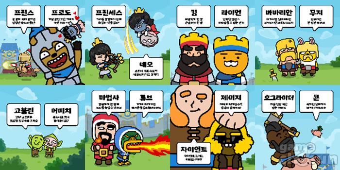 ‘클래시로얄프렌즈’는 ‘클래시로얄’의 대표 캐릭터 8종(프린스, 프린세스, 킹, 바바리안, 고블린, 자이언트, 마법사, 호그 라이더)이 ‘카카오프렌즈’를 통해 새로운 캐릭터로 재탄생한 것이 특징이다. 카카오프렌즈 캐릭터들이 ‘클래시 로얄’ 캐릭터로 변신해 각각의 특성과 레벨을 반영한 게임 카드로 등장한다.