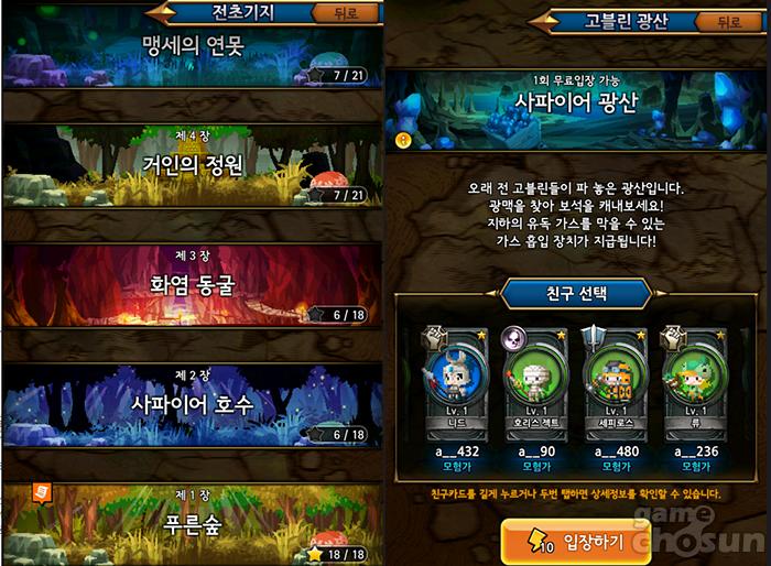 전초기지(왼쪽)과 고블린 던전(오른쪽) 이미지=스마일게이트메가포트 제공