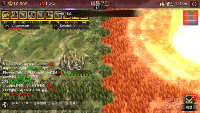 특히, 지도에 떨어지는 화염을 피해다니면서 전투를 벌여야 한다. 화염 지역 내에 있으면 병사가 줄어들며 결국 패배로 연결되게 된다. 즉시 이동할 수 있는 텔레포트 스킬을 활용하거나 빠르게 이동해 안전한 지역에서 전투를 벌이는 것이 중요하다.