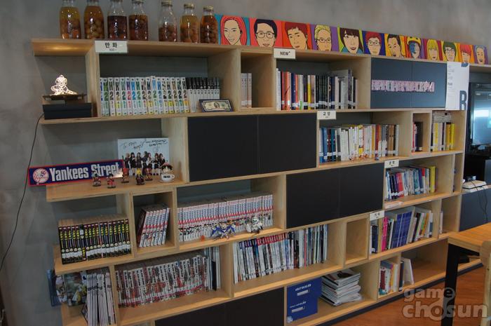 직원의 복지를 위한 작은 도서관도 마련됐다 = 게임조선 촬영