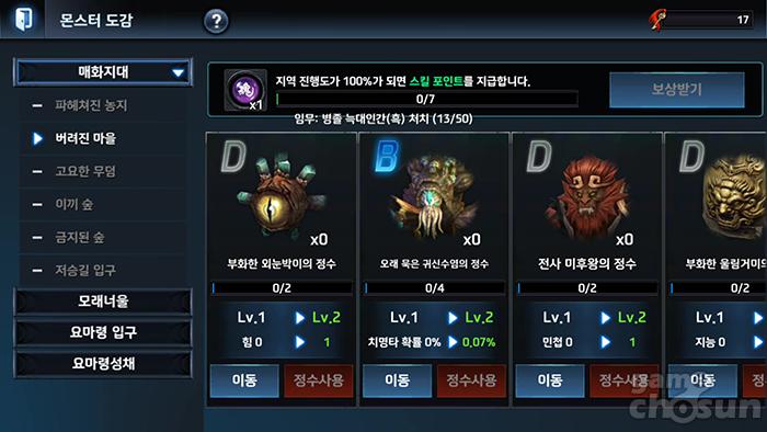 토벌 퀘스트를 수행하면 등급을 올릴 수 있는 정수를 획득한다 = 게임조선 촬영