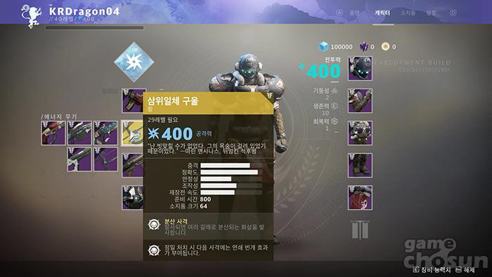 신규 모드를 살펴보기 전 현지화 된 ‘데스티니가디언즈’를 살펴보면 한국어 음성뿐만 아니라 각종 텍스트도 이용자들이 내용을 유추할 수 있도록 번역됐다. 이용자들의 캐릭터는 수호자(Guardian), 이용자의 실력을 시험할 수 있는 공격대(Strike), 최고 등급 아이템인 경이(exotic)과 같이 각종 요소가 현지화 됐다. 이 밖에도 게임 중 각종 안대들도 한국어 음성으로 제공된다.