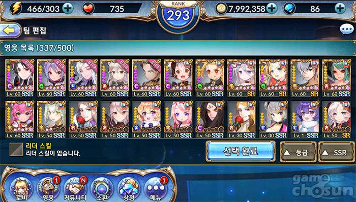 SSR등급 SR등급이 존재하는 게임들에 이미 익숙한 대다수의 유저들이 SSR만 고집하다가 현재는 SSR보다 더 좋은 일부 SR의 성능을 깨닫고 파밍 중이더라구요.