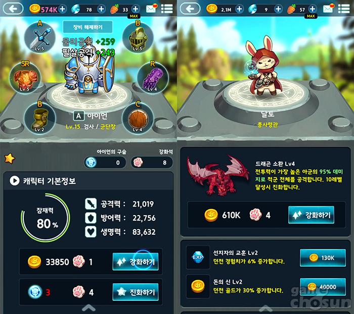 영웅 개별 업그레이드와 달토 업그레이드로 캐릭터 성장이 이뤄진다 = 게임조선 촬영