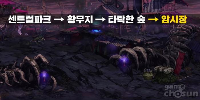 ‘일반 구역’에서는 각종 마계의 특산물을 판매하고 있으며, ‘암시장’ 깊은 곳으로 들어가면 카쉬파가 납치한 마계인, 수인들이 거래되기도 한다.