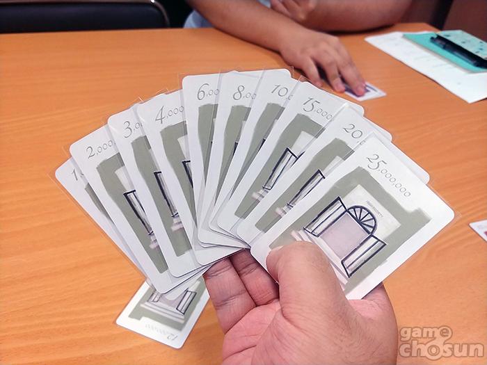 플레이어아마다 11장의 화폐카드로 게임이 진행된다. = 게임조선 촬영