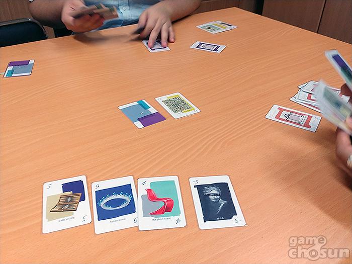좋은 카드는 경매로, 안 좋은 카드는 마이너스 경매 형태로 진행된다. = 게임조선 촬영