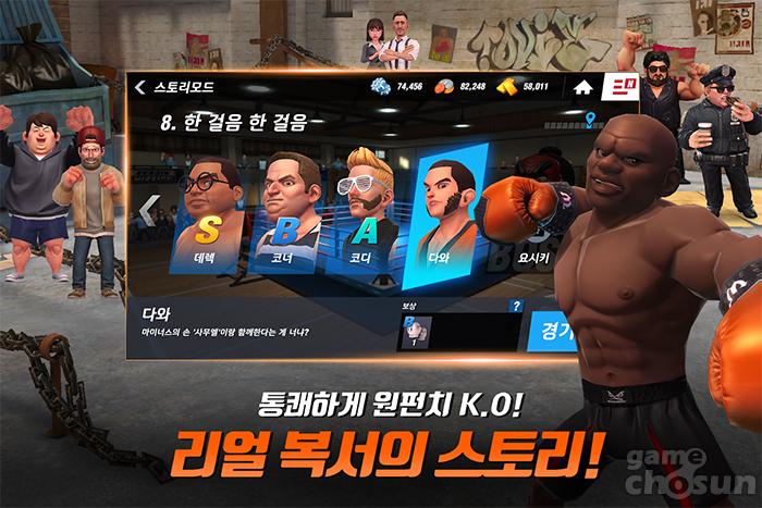 ‘복싱스타’는 글로벌 원빌드 방식으로 서비스되는 게임이기 때문에 국내에 출시되면 바로 글로벌 이용자들과 게임을 플레이할 수 있다. 싱글 플레이인 스토리뿐만 아니라 게임 내 이용자의 실력에 맞춰 비동기 대전을 할 수 있다.