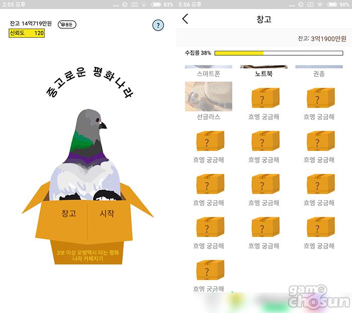 메인 화면과 창고 이미지 = 게임조선 촬영
