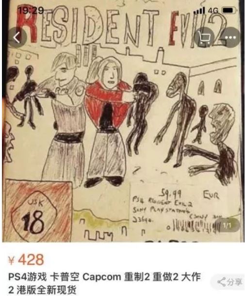 중국 판매 앱에 등록된 '바이오하자드2RE: 2' 판매글 사진 = 알리 갈무리