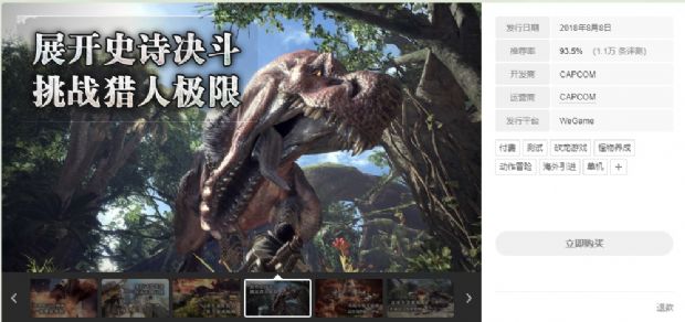 중국 서비스 당시의 '몬스터헌터: 월드' 소개글 = 홈페이지 발췌