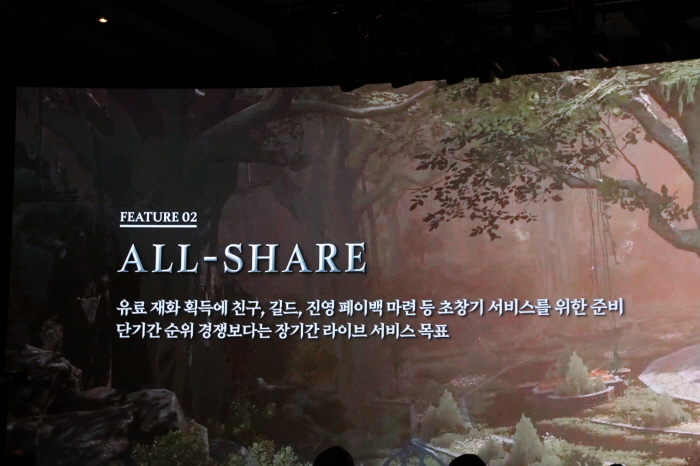 우선 '자유도'와 '분배'를 핵심 키워드로 하는 비즈니스 모델을 도입, 유저의 과금이 개인 뿐만 아니라 전체에 분배되는 방식의 비즈니스 모델을 소개했다. RPG의 가장 큰 콘텐츠인 성장면에서도 아이템의 가치를 최대한 해치지 않도록 해, 안심하고 게임을 장기적으로 즐길 수 있도록 유도한다는 계획이다.