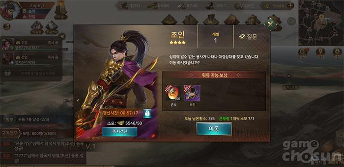 이밖에도 영지 행운 임무나 국가 임무를 통해 진행 가능한 명장 이벤트나, 월드맵에 랜덤하게 등장하는 유랑 장수, 각 성 관저에 머물고 있는 장수와의 호감도 상승을 통해 해당 장수 조각을 얻을 수 있고, 이를 일정량 모아 해당 장수를 영입하는 것 역시 꾸준한 방법 중 하나다.
