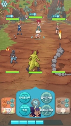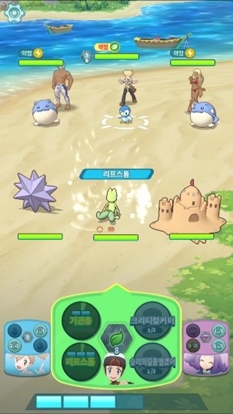 3대3 팀으로 진행하는 실시간 배틀이 「Pokémon Masters」의 포켓몬 배틀의 특징입니다.